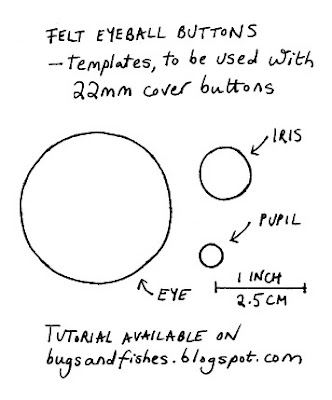 If your cover buttons are a different size to mine, use a pencil and a compass to draw your own templates for the pupil and iris.