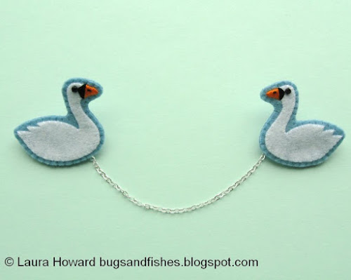 This tutorial originally appeared in a bookazine called Adorable Animals, last year. It was designed as a tutorial for making cute swan collar clips but if you don’t fancy the idea of collar clips (or, like me, just don’t own many clothes with collars) you can just make a single swan and wear it as a brooch.