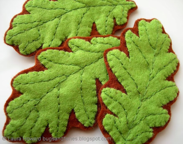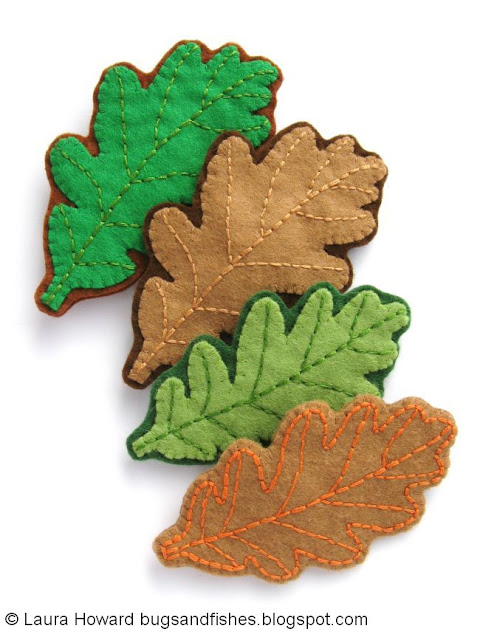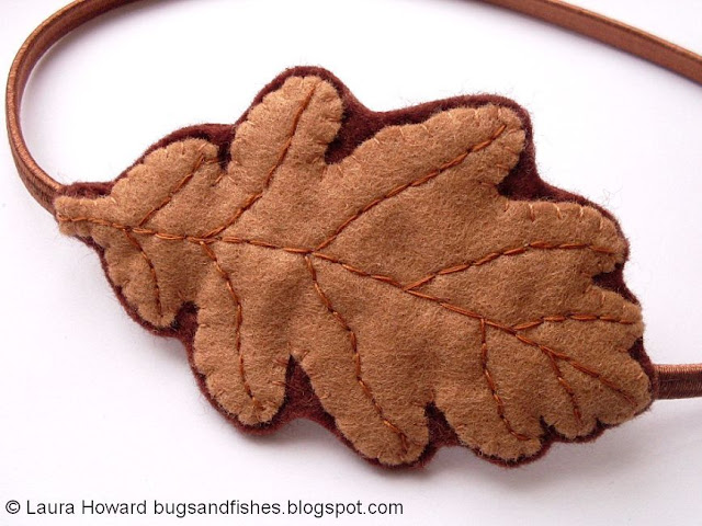 The oak leaves also make great headbands! Simply attach your stitched leaf to an elastic hairband or a length of coordinating ribbon and channel your inner wood nymph...