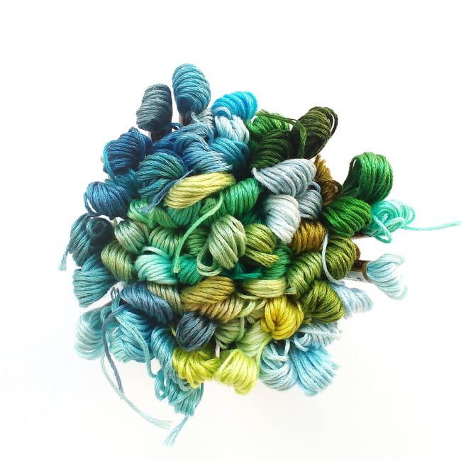 Matching sewing threads: orange, bright pink, purple, pink, and yellow.