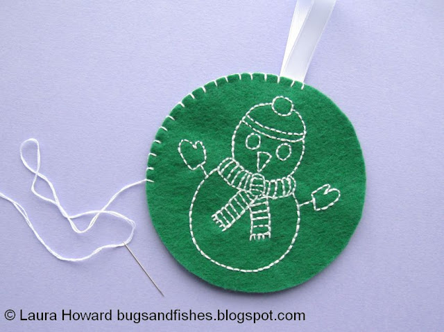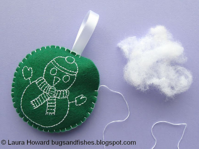 This snowman bauble is part of a set of cute felt Christmas ornaments I designed for docrafts Creativity magazine last year. I'll be sharing tutorials and patterns for making all the ornaments in the set over the coming weeks.