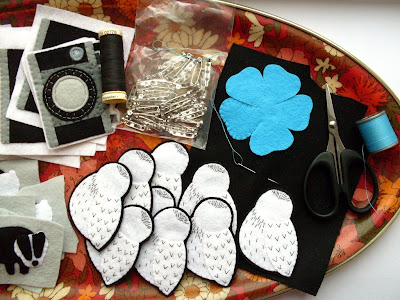 As well as cutting out all those tiny forget-me-nots & enjoying the rhythm of sewing all those tiny stitches, this week I've been making lilac flower headbands (I love making those little felt buttons!), more snowy owl brooches , and finishing an extra-large flower brooch which will be making an appearance in my Etsy shop sometime soon.