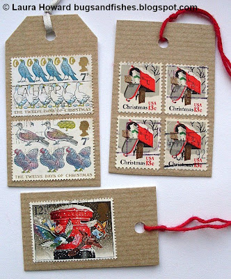A single special stamp (I adore those little birds!) can be enough for a smaller parcel, but for larger tags try repeating the same stamp or using matching sets.