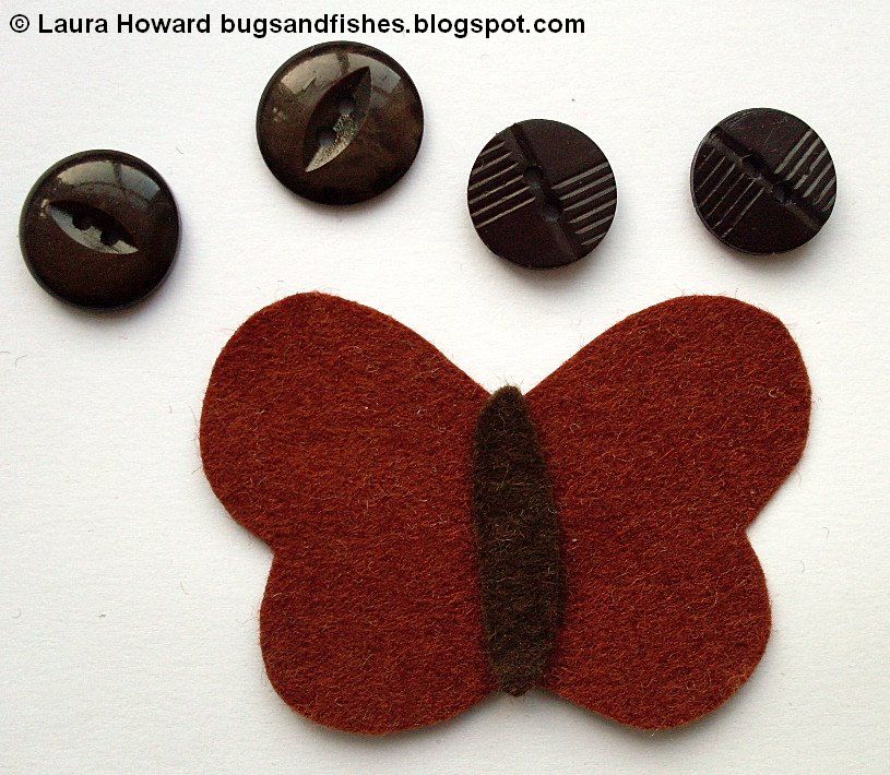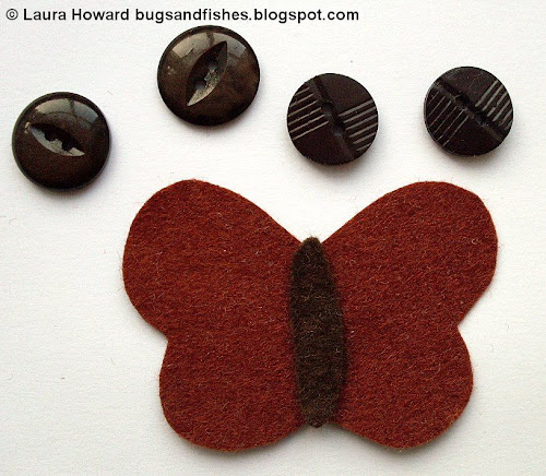 Next choose your buttons to match - again, mine are brown to suit my moth but you can have lots of fun playing around with colours.
