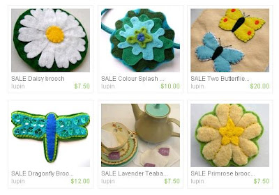 Today I have torn myself away from another frenzy of felt-button-making (I'm so glad everyone likes those!) to mention some some of the lush things to be found in my sponsors' shops...