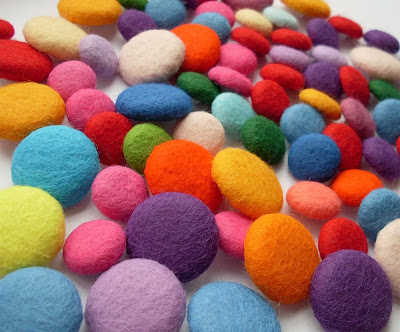 I am so in love with the buttons, they are so sweet and cheerful and deliciously tactile. They are also quite addictive to make, but I will run out of felt scraps eventually...