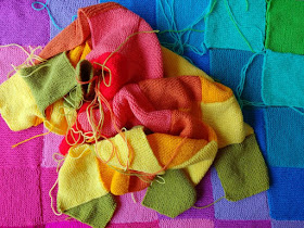 I bought the final ball of yarn last month and finally finished knitting the squares last week.